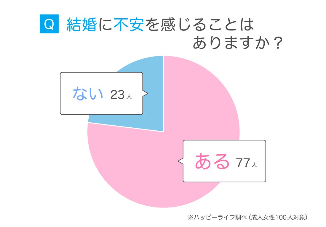 結婚願望がある一方で、同じ割合である77%の女性が「結婚に不安を抱いている」と回答しています。