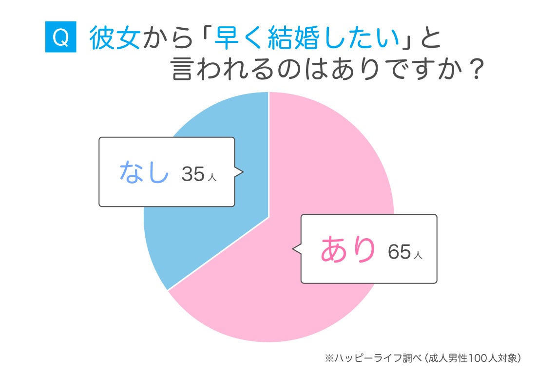 彼女から「早く結婚したい」と急かされることに、65%もの男性が前向きに捉えています。