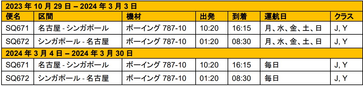シンガポール発名古屋行きは週 5 便に増便します。さらに2024年3月4日よりデイリー運航となり、新型コロナウイルス感染拡大前のレベルまで回復します。