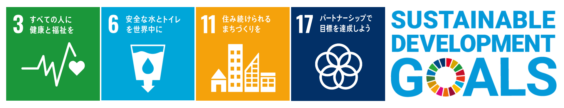 なお、「THINK SPACE LIFEプラットフォーム」の取組みは、SDGs(持続可能な開発目標)における健康や住まいに関する下記3、6、11、17の目標を中心に、参画企業との連携を通して貢献を目指します。
