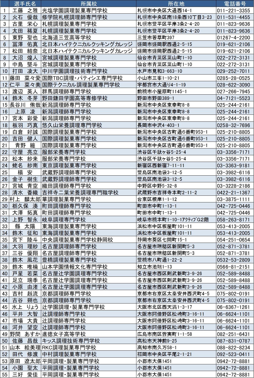 地区大会通過者計55人(日本料理部門21人、西洋料理部門21人、中国料理部門13人)