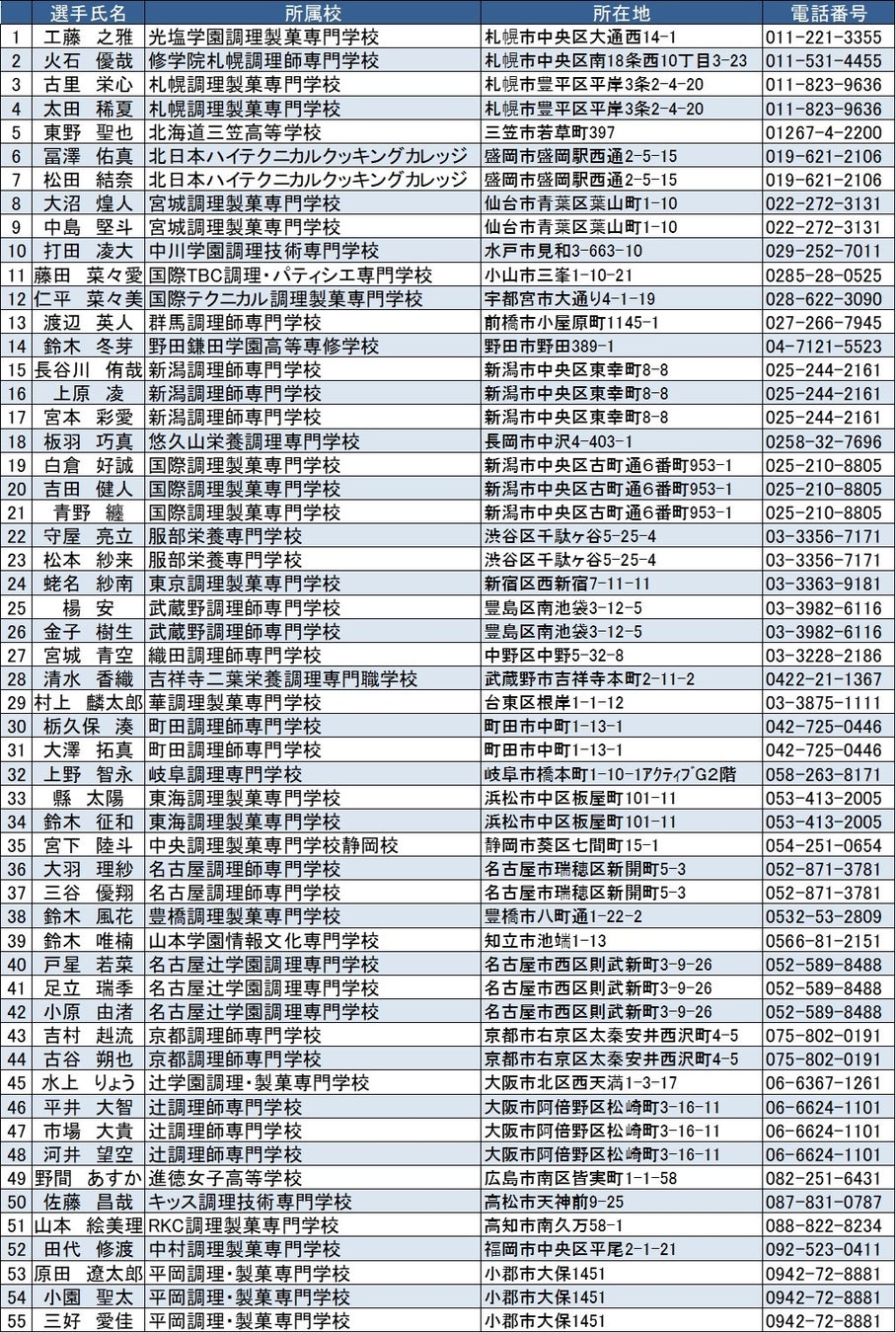 公益社団法人 全国調理師養成施設協会(会長:中川純一、所在地:東京都渋谷区) は、「第41回調理師養成施設調理技術コンクール」の地区大会(予選)を開催し、2026年2月19日(木)に開催される全国大会(決勝)の出場者55名を選出しました。出場者一覧を公開いたします。