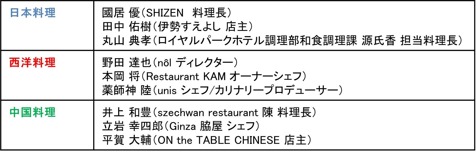 調理師学校卒業生で活躍している調理師(下表)及び調理師学校の教員等