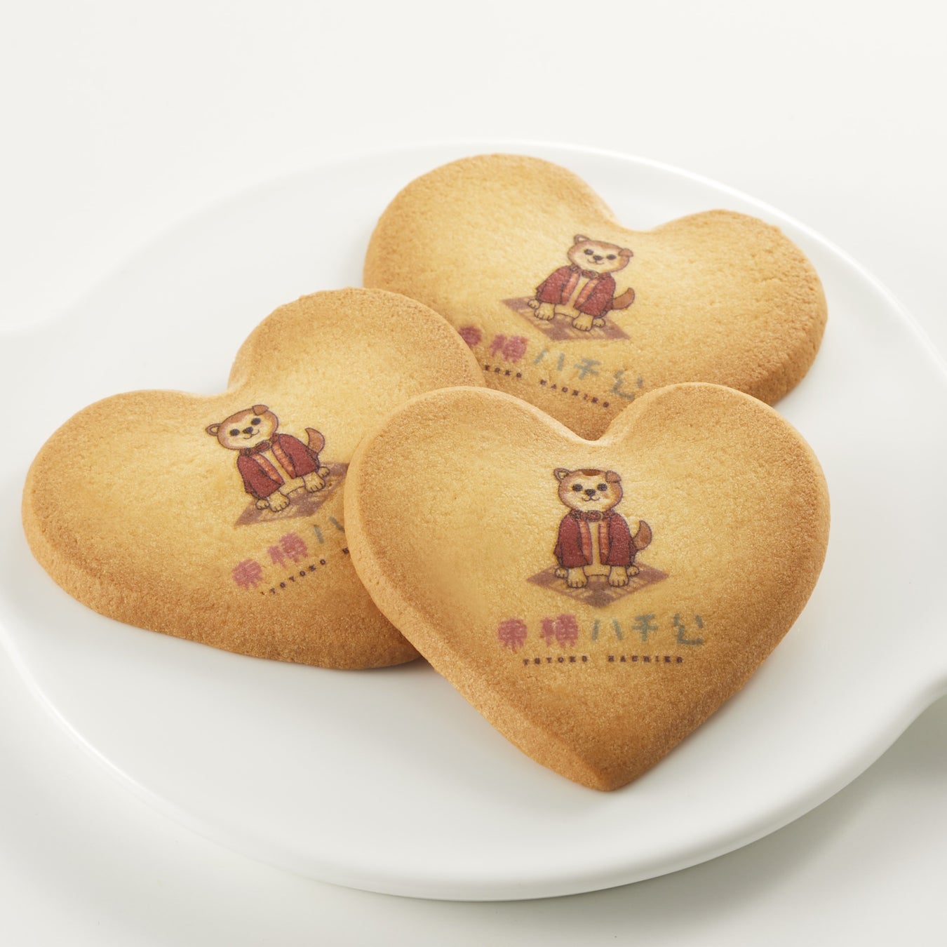 ハート型が可愛い「しあわせサブレ」に、東横のれん街まつりの法被を着た東横ハチ公をプリント。発酵バターの芳醇な味わいと、口の中でカリッとはじける岩塩の食感が特長です。思わず笑顔になる可愛らしいハート形は贈り物にもぴったりです。