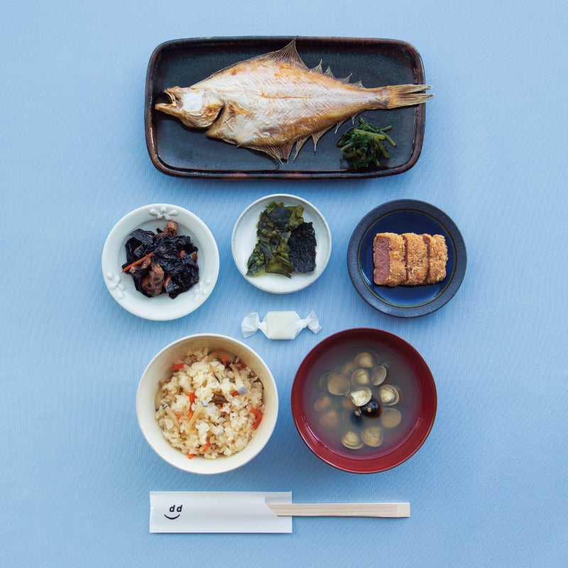 編集部が数ヶ月間、暮らすように現地を旅して本当に感動したものだけを本音で紹介するガイドブック『d design travel』の最新刊は島根特集。d47 MUSEUMでは、掲載地で実際に使用されている道具や日用品、工芸品、建築の一部などを特別に展示します。島根の名産を購入できるショップや、特別メニュー「島根定食」(写真)も登場します。