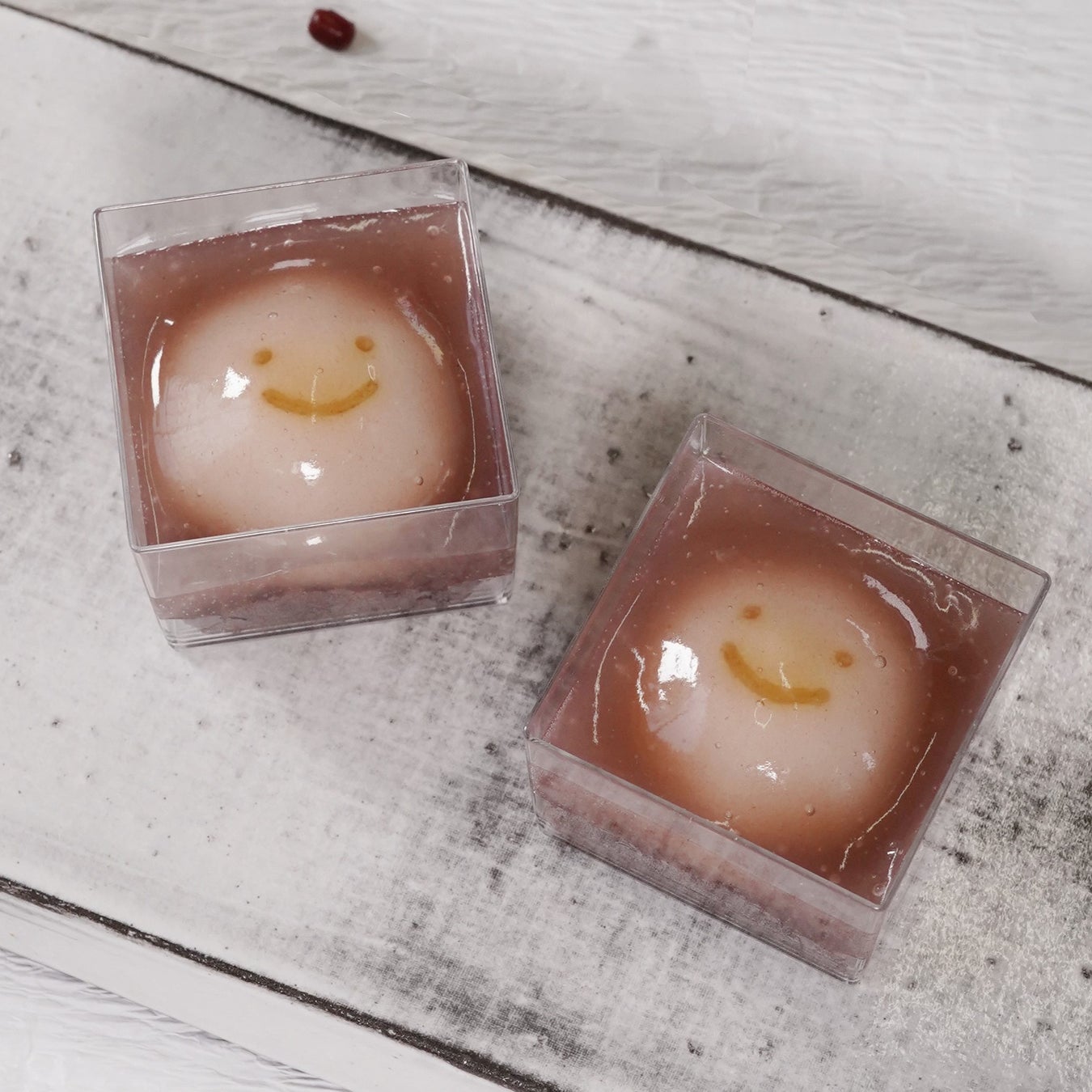 滋賀県産米粉を使用した笑顔が可愛いお団子。もちもち食感のお団子に、北海道十勝産小豆のタレがたっぷりかかっています。