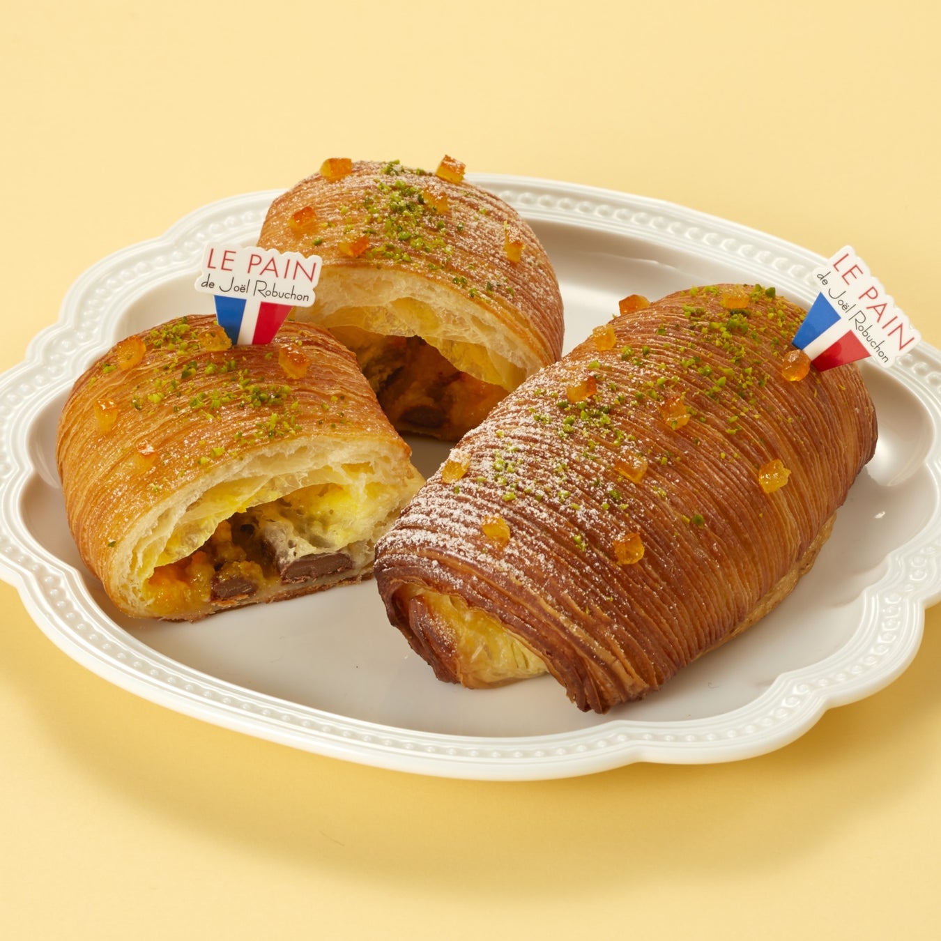 爽やかな柑橘系やレッドフルーツのような香りが特長のル ショコラ ドゥ アッシュのショコラを、クロワッサン生地に包んだ、お花見にもぴったりなワンハンドフード。ショコラとともに包まれたオレンジジャムが素材の風味を一層引き立てます。