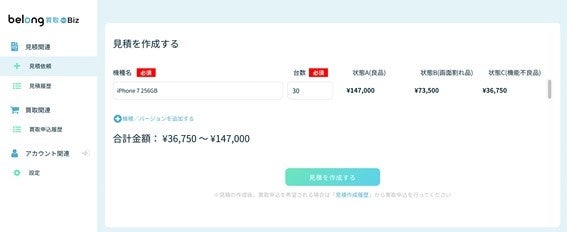②買い取り額査定から、配送まで全行程をWEBで完結!「Belong買取 for Biz」アプリケーションを提供開始