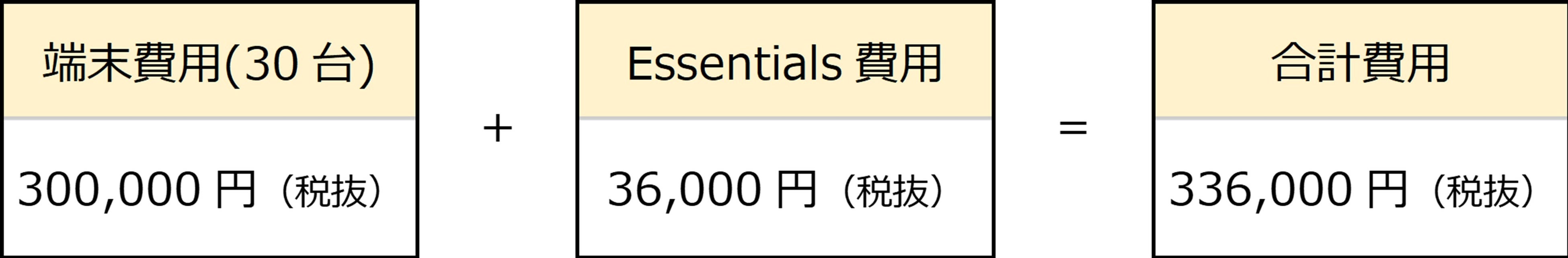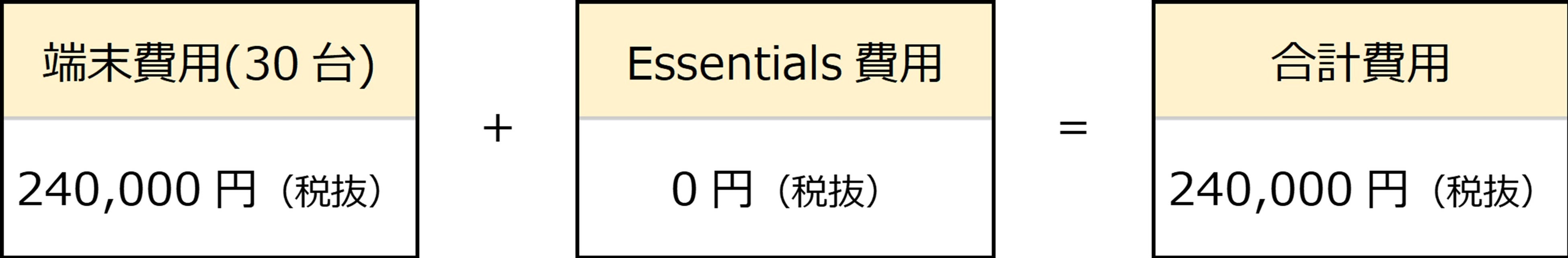 iOS端末を30台導入いただいているお客様が、Belong One 販売プランでXperia XZ1 SO-01Kを30台購入し、同時に Android Enterprise Essentials にお申込み頂いた場合。