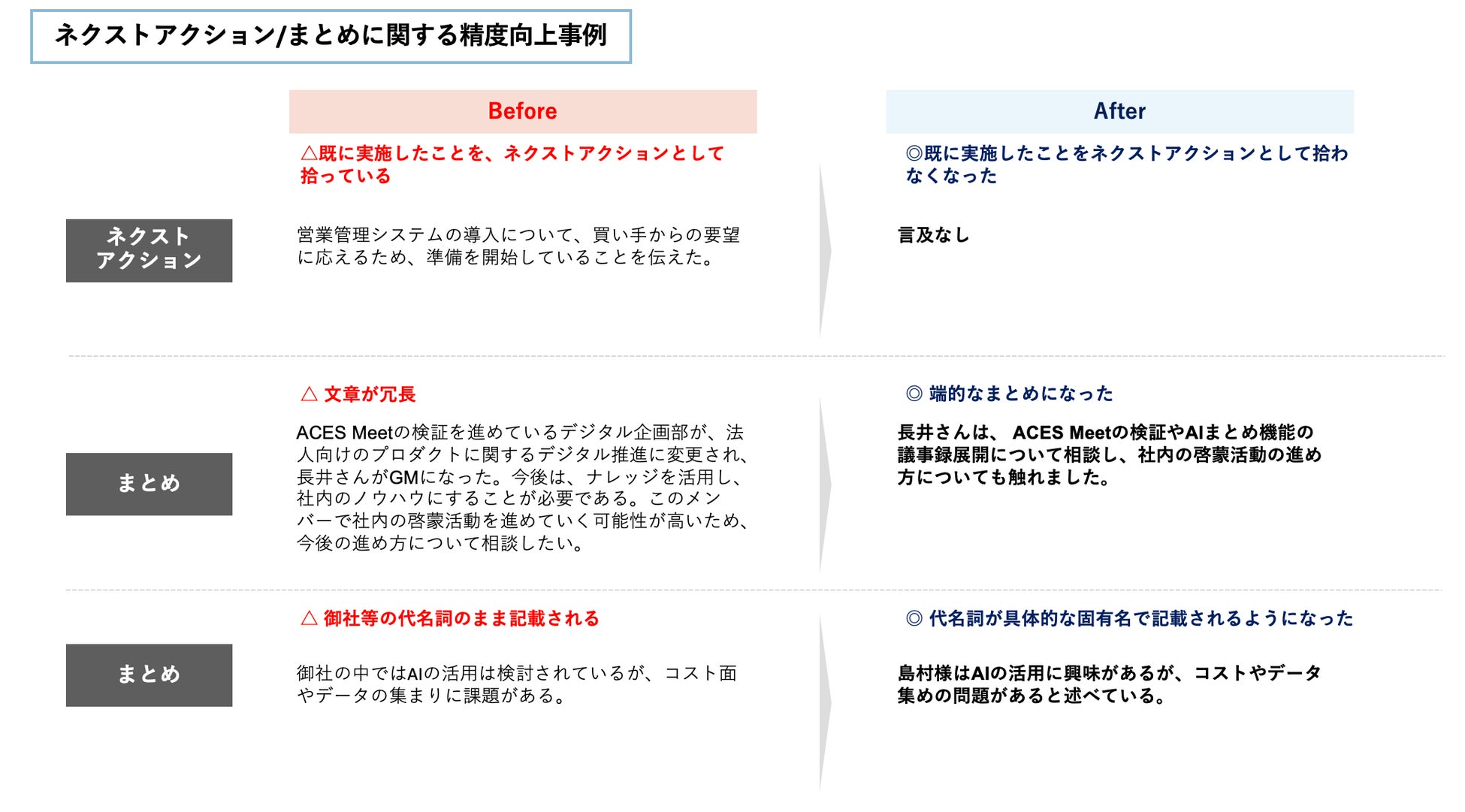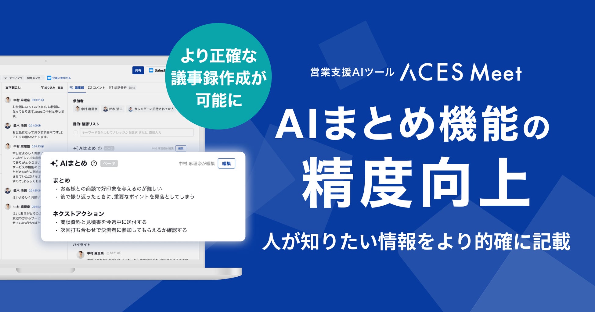 商談解析AIツールACES Meetの議事録作成機能「AIまとめ」精度が向上