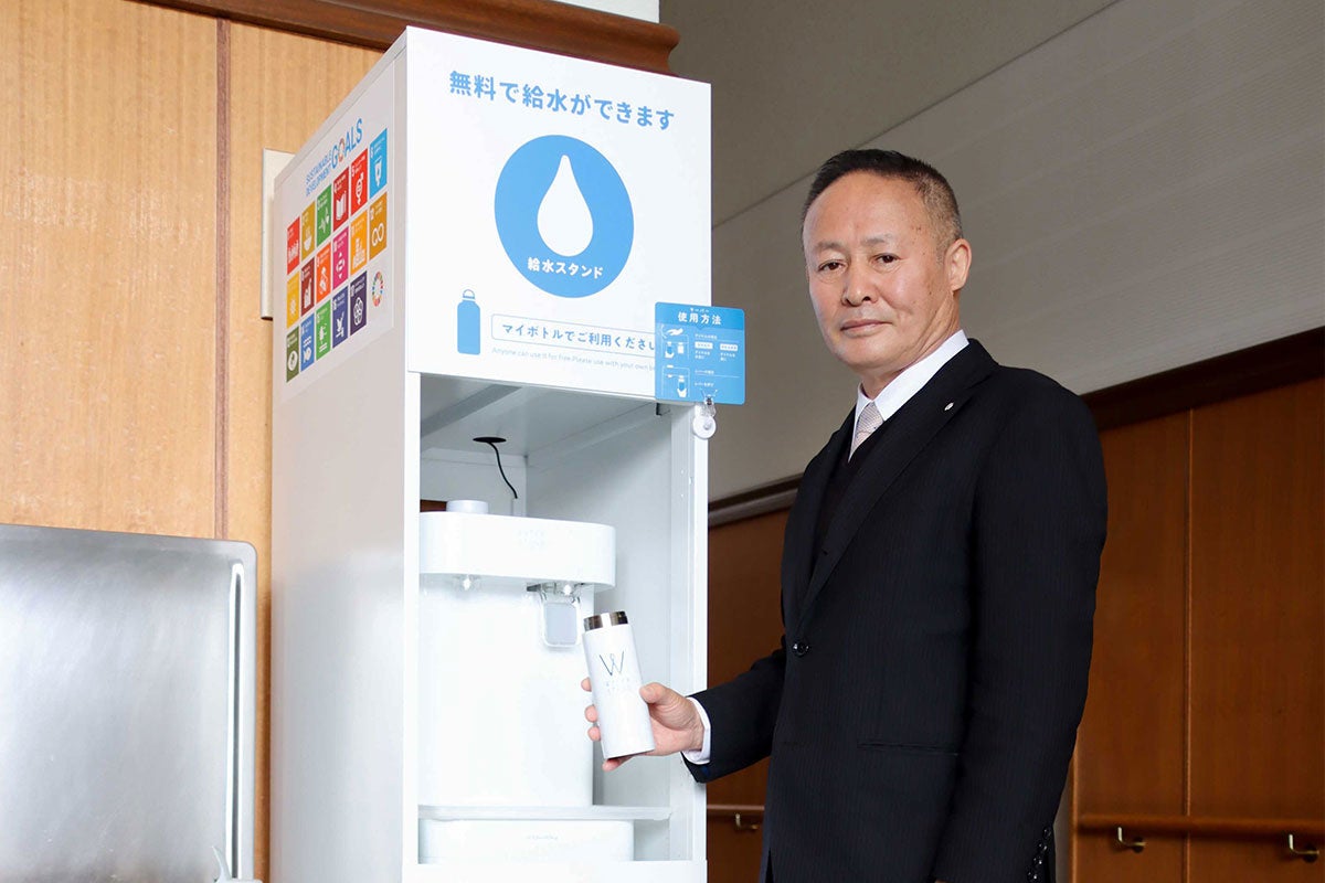 当社は、同町の取り組みを後押しすべく、公共施設にウォータースタンドを設置し、全世界的な喫緊の課題であるプラスチックごみの削減を推進します。同時に、当社のこれまでの知見を活用し住民や事業者らと連携を深め、地域と一体となり社会課題解決に寄与して参ります。