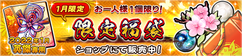 当月に開催されるイベント「【幼き頃の夢は】&【調伏戦】特効! 英傑 縁結び」で使用できる「【御朱印付き】 1月・英傑結糸(10回)」を1個と、キャラクターの強化に必要なアイテムがまとめて手に入るお得なセットです。