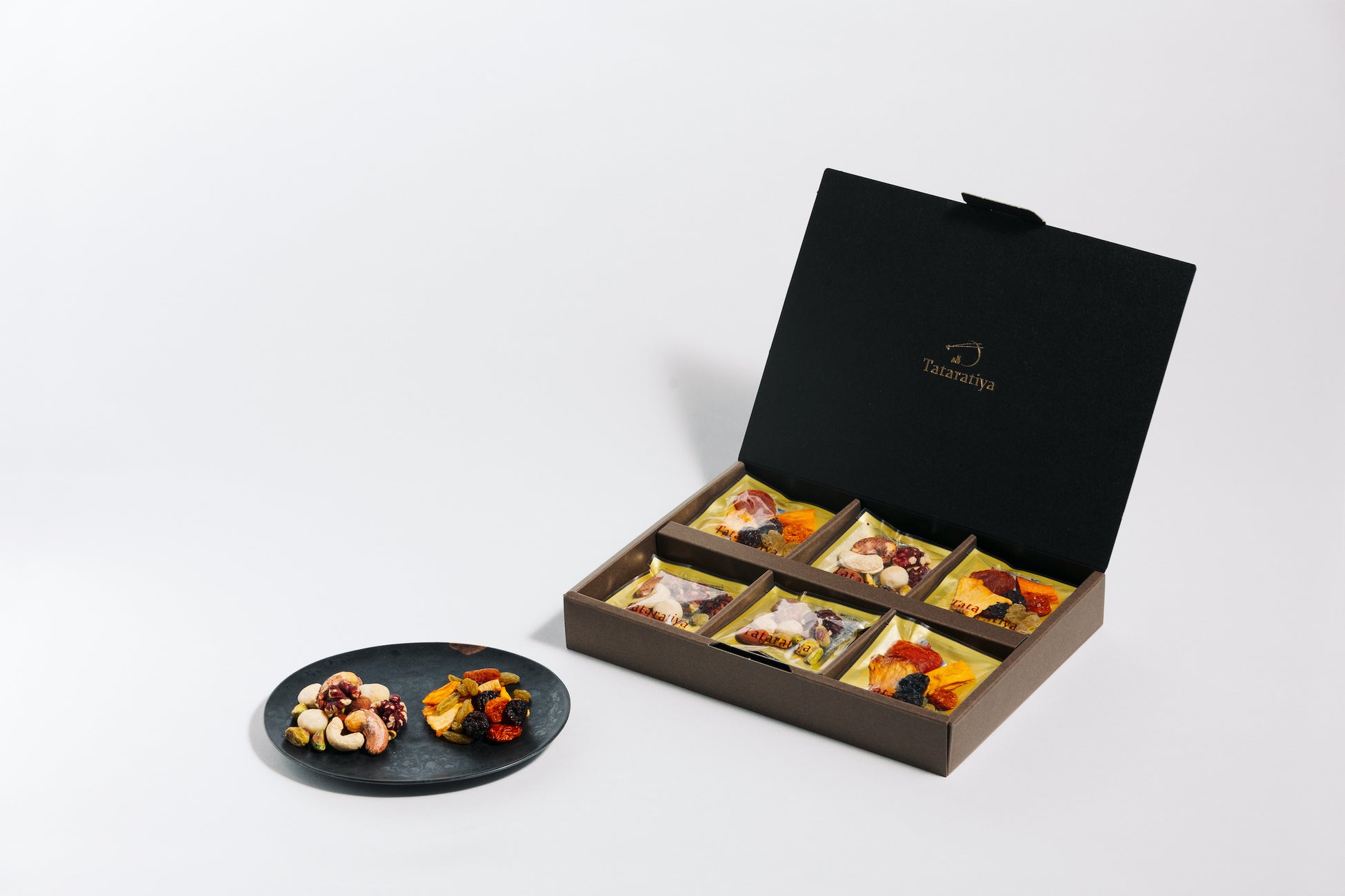 温風乾燥で長時間かけて乾燥させており、栄養豊富で色鮮やかに仕上げました。ギフトに人気のフルーツとナッツのアソートです。食べきりサイズで日持ちもするほか、ヨーグルトやティータイムのお供にもおすすめです。