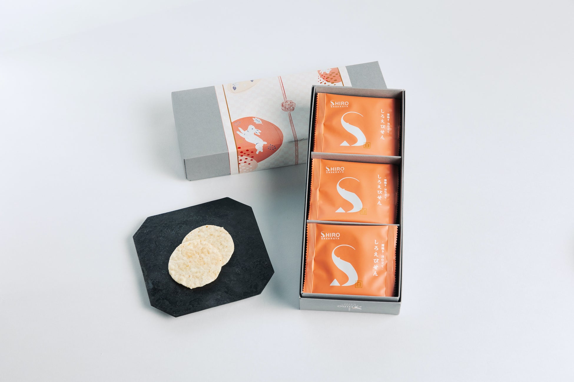 富山湾の宝石「しろえび」をたっぷり使用した薄焼きのしろえびせん。オリーブオイルとほのかな酸味をプラスして洋仕立てに仕上げた手土産におすすめの商品です。