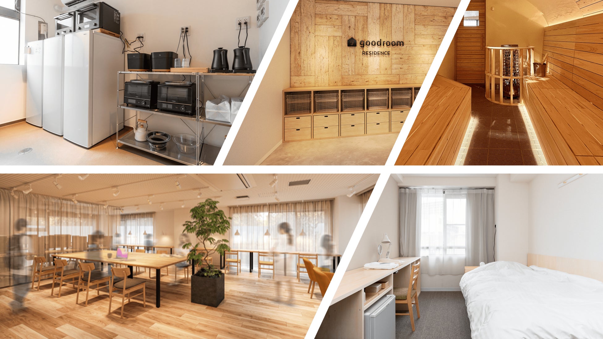 goodroom residence は、2024年3月期に株式会社良品計画との覚書に基づき実施したリノベーションをベースとし、居室以外にもワークラウンジ( goodroom ラウンジ )、シェアキッチン、およびサウナ等を共用部に併設し、新しい暮らし方/働き方のサービス強化を図っています。