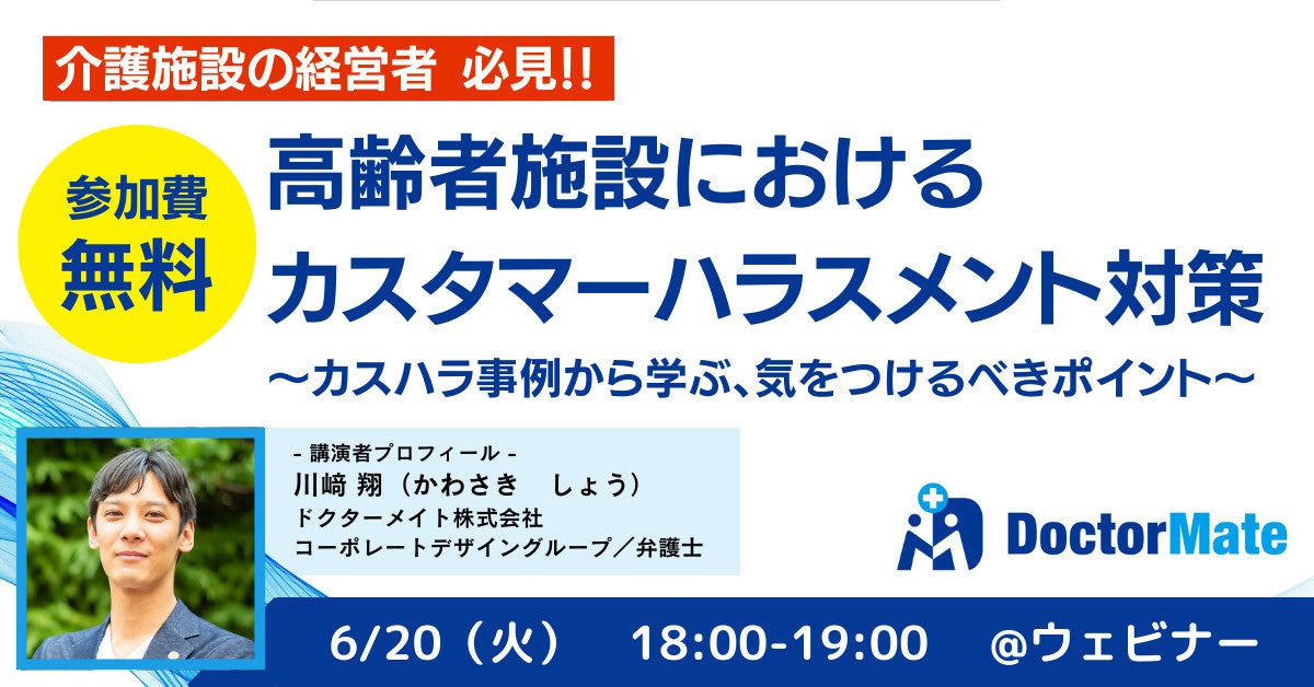 【高齢者施設 施設長・経営層向け無料Webセミナー】【6月20日 18:00〜】「高齢者施設におけるカスタマーハラスメント対策」