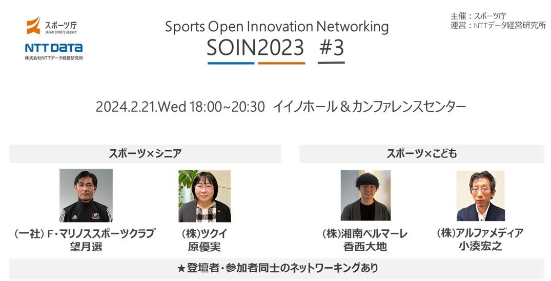 「SPORTS OPEN INNOVATION NETWORKING 2023 (SOIN2023)」第3回イベントを2月21日(水)18:00~20:30開催
