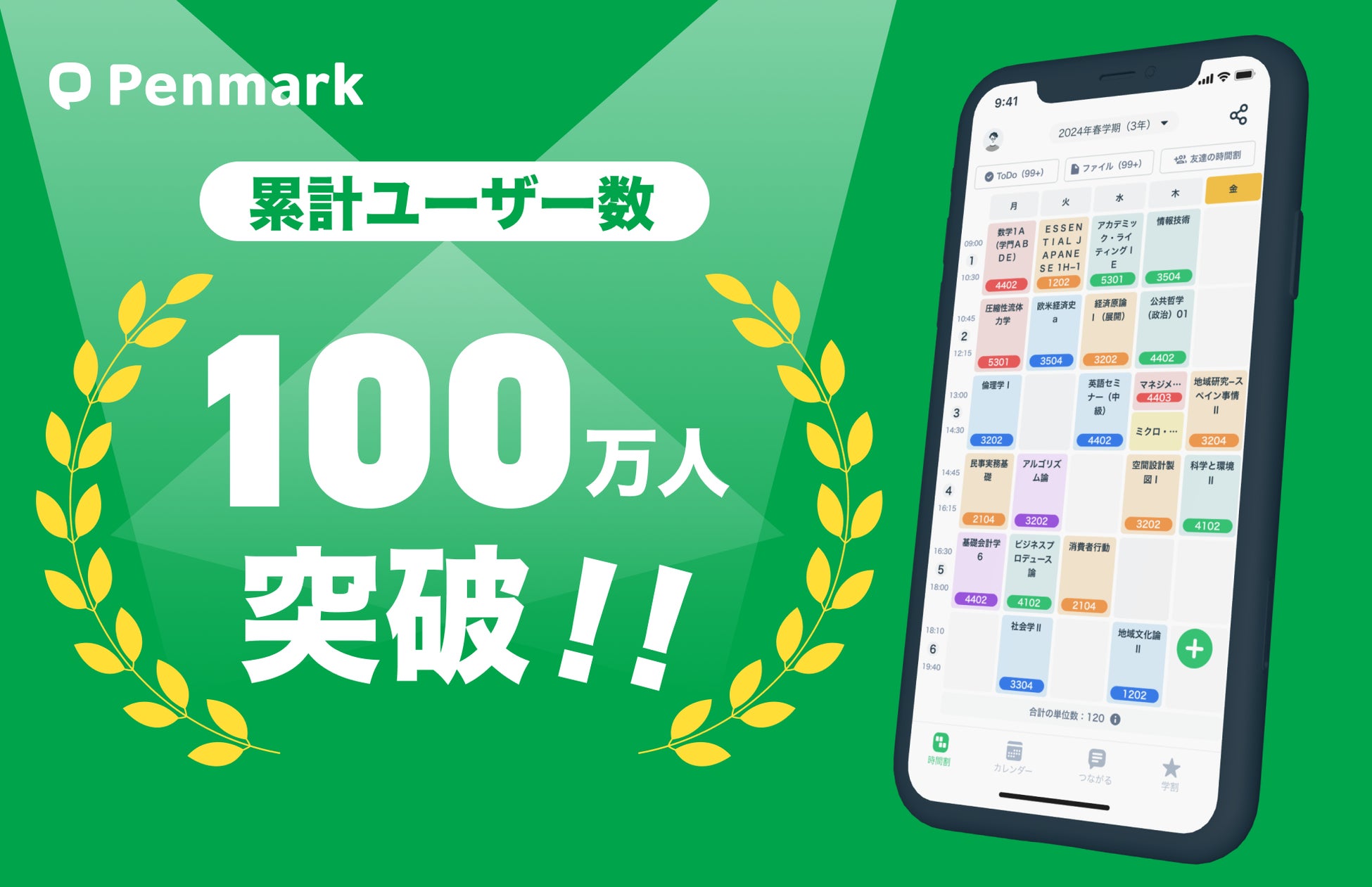 この度は、多くの学生の皆様にご利用いただき、Penmarkの累計ユーザー数が100万人を突破したことを心よりお礼申し上げます。