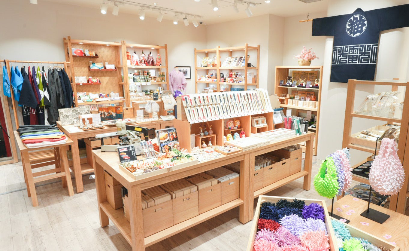 店内には、日本の作家や職人による作品、遊び心のある縁起物やデザイン雑貨、日本文化を楽しめる体験などを展開。さらに、KIMONOブランド「参 mile」からは、オープンを記念して企画・制作した黒羽織やキッズ半纏も登場。KIMONOからお菓子まで、日本文化の多彩な魅力を小さな空間の中に散りばめました。
