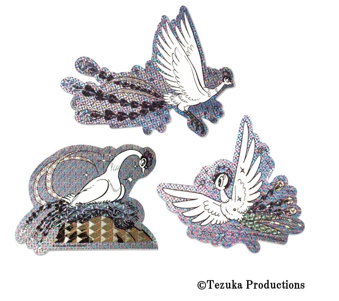 作中の様々な姿の火の鳥が、ステッカーとして登場します。キラキラと輝くホログラム仕様です。