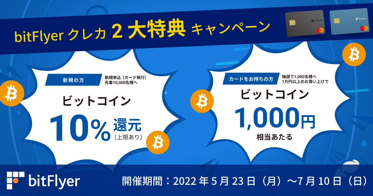 「bitFlyerクレカ」、2大特典キャンペーン実施 ~「ビットコインが10%還元になる新規入会キャンペーン」&「ご利用ありがとう! ビットコイン1,000円相当があたるキャンペーン」~