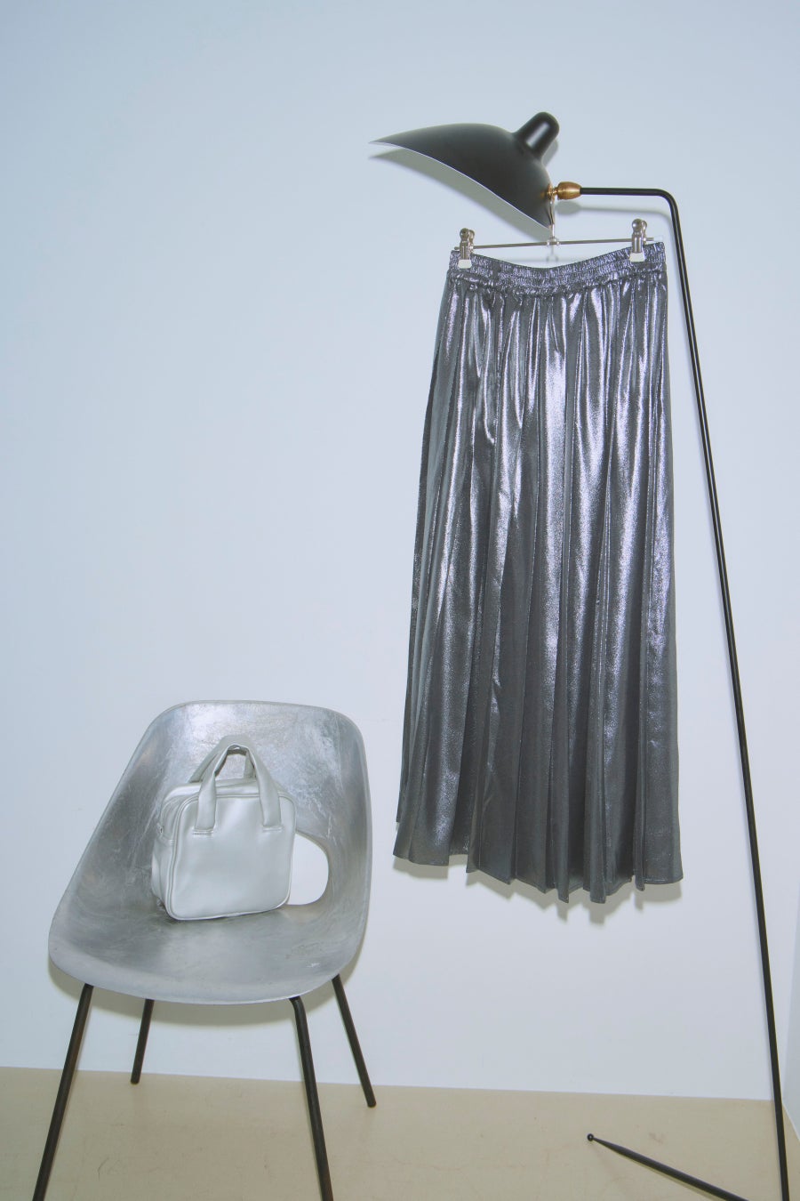 ‟Metalic pleats skirt ” & ‟Bag”