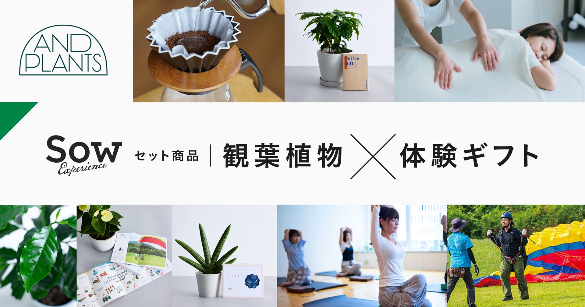 ソウ・エクスペリエンスが販売するさまざまな「体験ギフト」と、体験ギフトに合わせてアンドプランツがセレクトした「観葉植物」がセットになった新商品が登場!