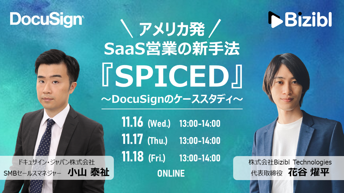 DocuSignとBiziblが共催ウェビナー 『アメリカ発 SaaS営業の新手法 "SPICED" ~DocuSignのケーススタディ~』を開催