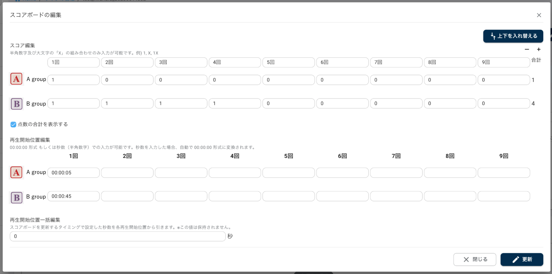 スコアに動画配信秒数を指定することで、視聴者を簡単に見どころのシーンへ誘導可能。