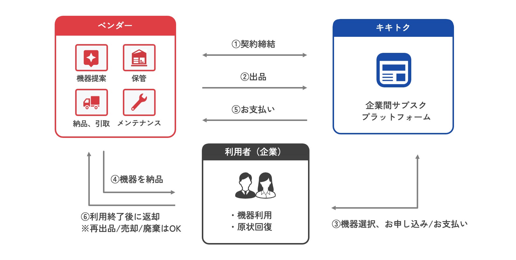 ・利用終了時には、ベンダーにて機器引き取り後メンテナンスして再出品が可能です。