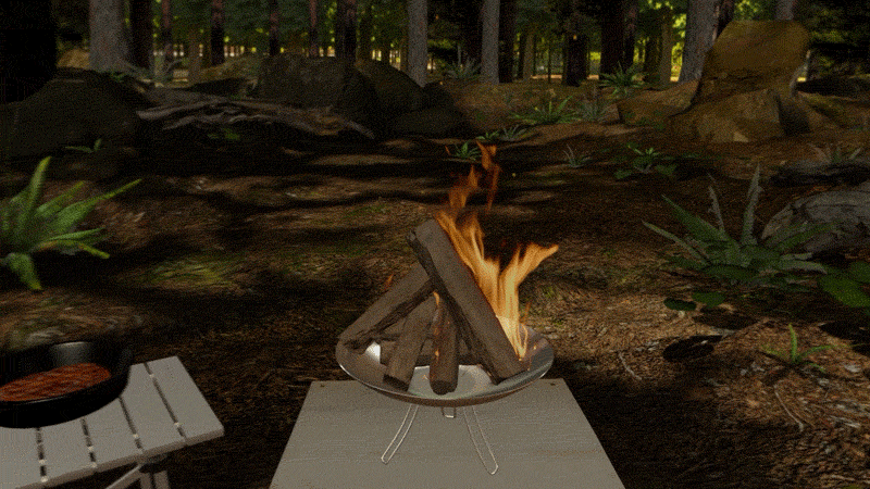 キャンプ体験の象徴である「焚き火」の映像のリアルさを追求。揺らめく炎のグラフィックや、時間による炎の強弱の変化を追求し、まるで本物の焚き火の前にいるかのような感覚を提供します。