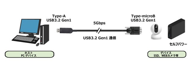 USB 3.2 Gen1(USB 3.0)規格に対応し、最大5GbpsまでのUSBデータ転送が可能です。最新PCとWEBカメラやマシンビジョンカメラなどの最新USB 3.2 Gen1(USB 3.0)セルフパワーデバイスとの接続でご利用いただけます。※1) ※2) ※3)