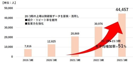 23/3期末で約4.5万組のお客様データが蓄積されています。