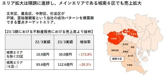メインの城南6区でも昨対比で20%増の取扱高となり、23区外では3倍にも迫る勢いの成長を見せています。