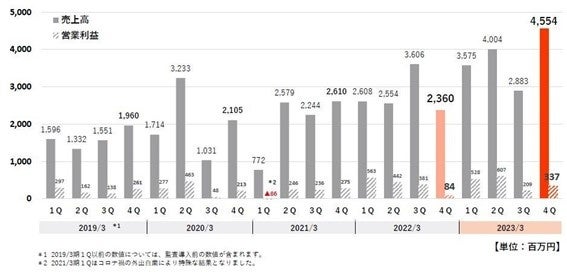 今年は年度業績として過去最高となりましたが、直近の23/3期4Qは四半期業績としても売上高で過去最高となりました。