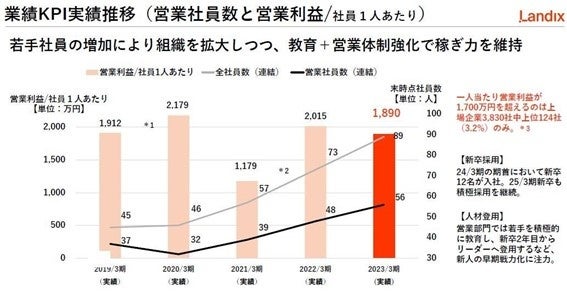 これから成長を加速させていく局面で、人材採用はさらに強化していきますが、ここで当社が重視しているのは社員一人当たりの営業利益です。