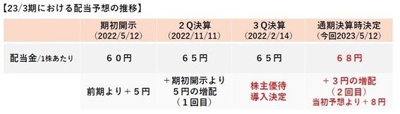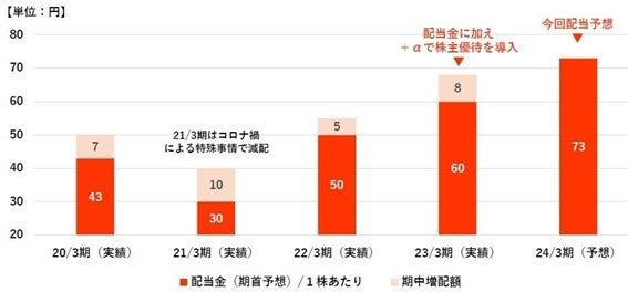 また、期中には株主優待を導入しており、23/3期は株主還元を強化した年となりました。