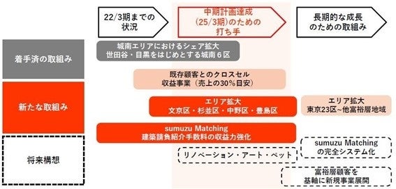 22/3期には、既存顧客へのクロスセルという考え方から収益事業を強化していますが、不動産以外でも少しずつ事業領域は広げており、「不動産に関する分野を中心に事業展開を行うのか?」と言われれば、確かにそれが効率的でもあるのですが、「今の顧客層のニーズに合ったサービス、次世代に生まれてくれる価値観にフォーカスして事業を展開しよう」という方に主眼があります。