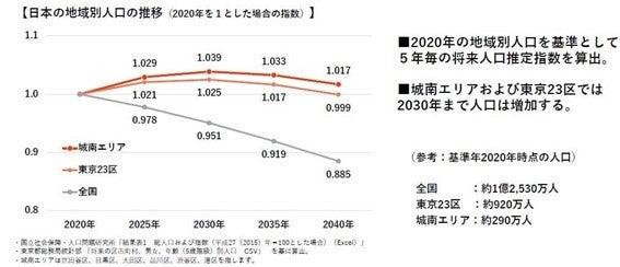 まず、不動産売買の市場規模が非常に大きいというのもありますが、実は東京都の統計局から出ているデータを確認すると、特にこの城南エリア、および23区の人口はまだ増加し、しばらくは長期的に安定することが分かっています。