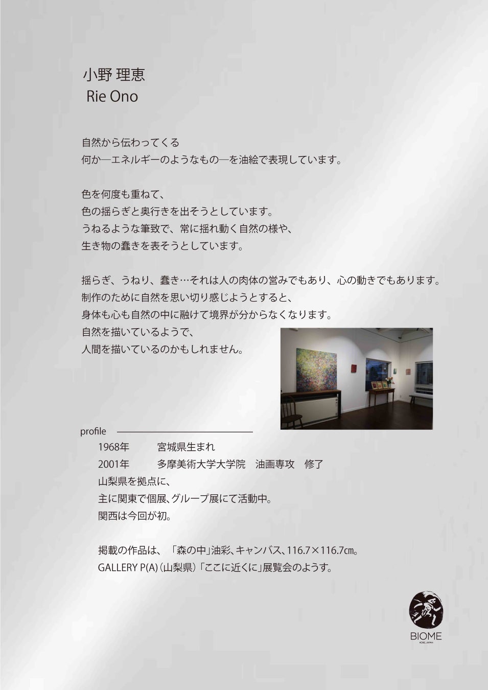 小野氏とは所縁もない神戸で、作品をご紹介できることは光栄です。