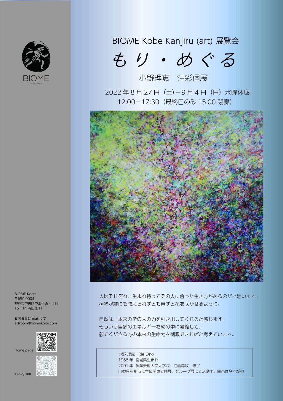 山梨から神戸初の個展です。油彩画家 小野理恵の世界をお愉しみください。