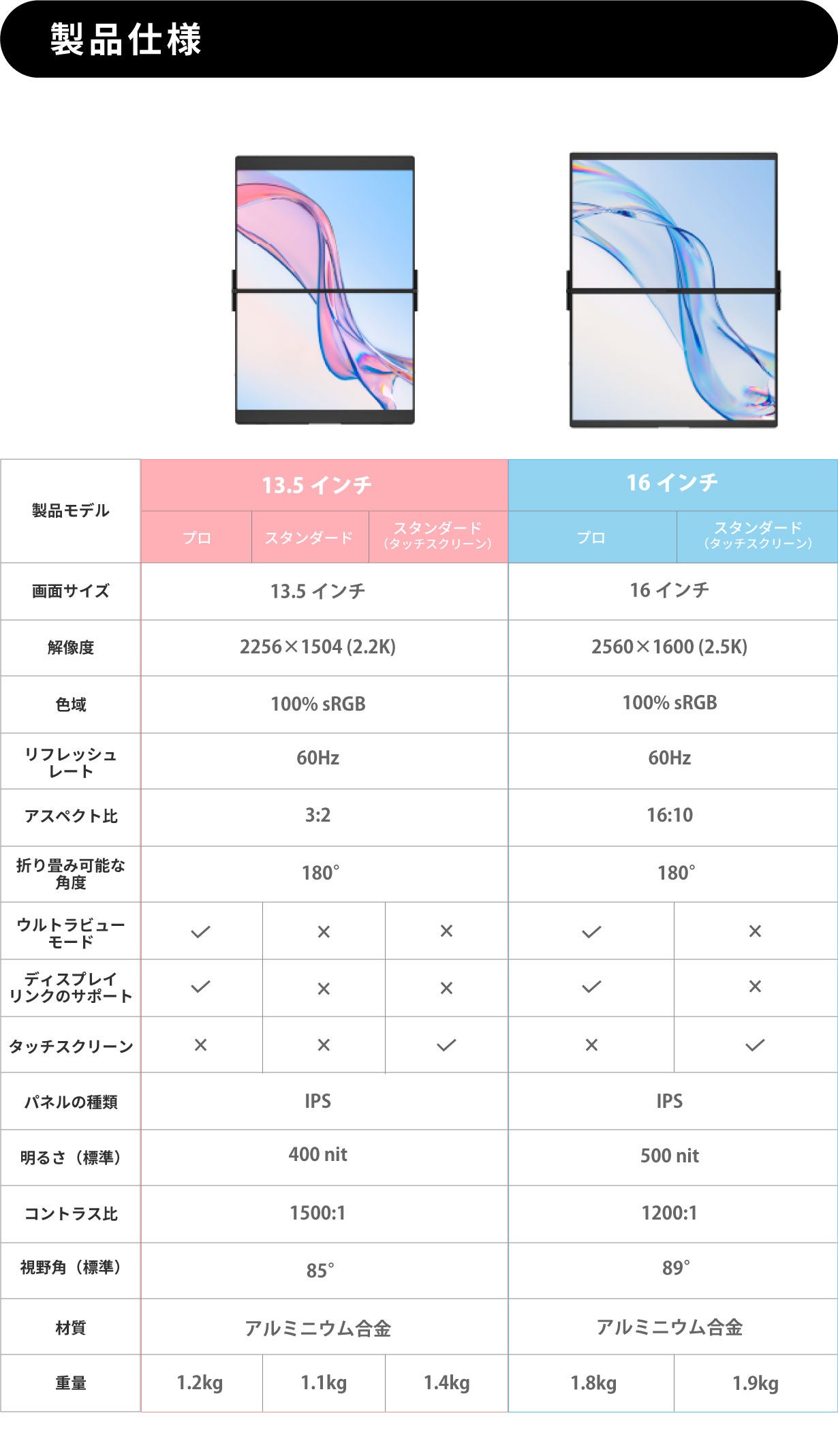 ・13.5インチ プロ/スタンダード/スタンダード(タッチスクリーン)