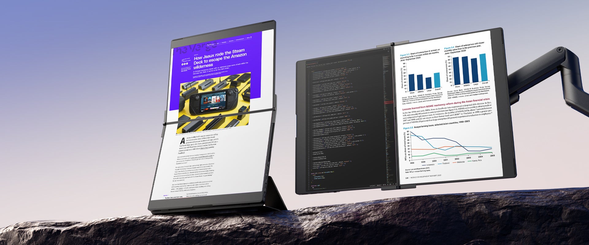 重さやサイズを気にせず、いつでもどこでも二画面の利便性を。