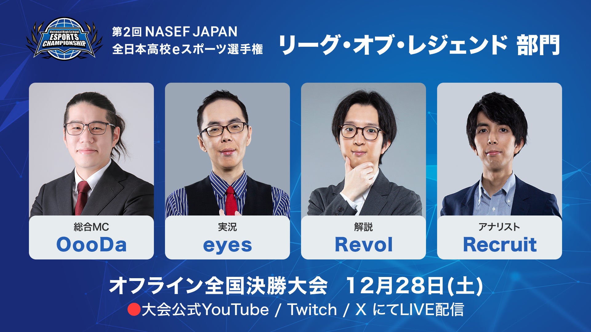 各部門の全国決勝は大会公式YouTube、大会公式Twitch、大会公式Xにて、無料ライブ配信を行ないます。