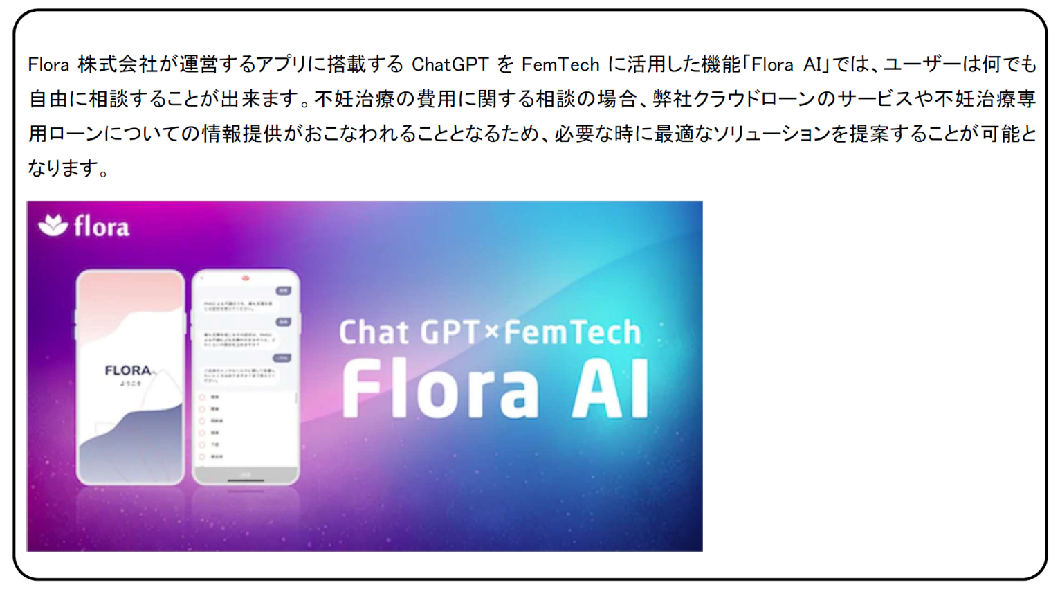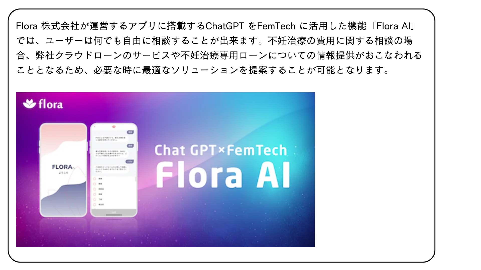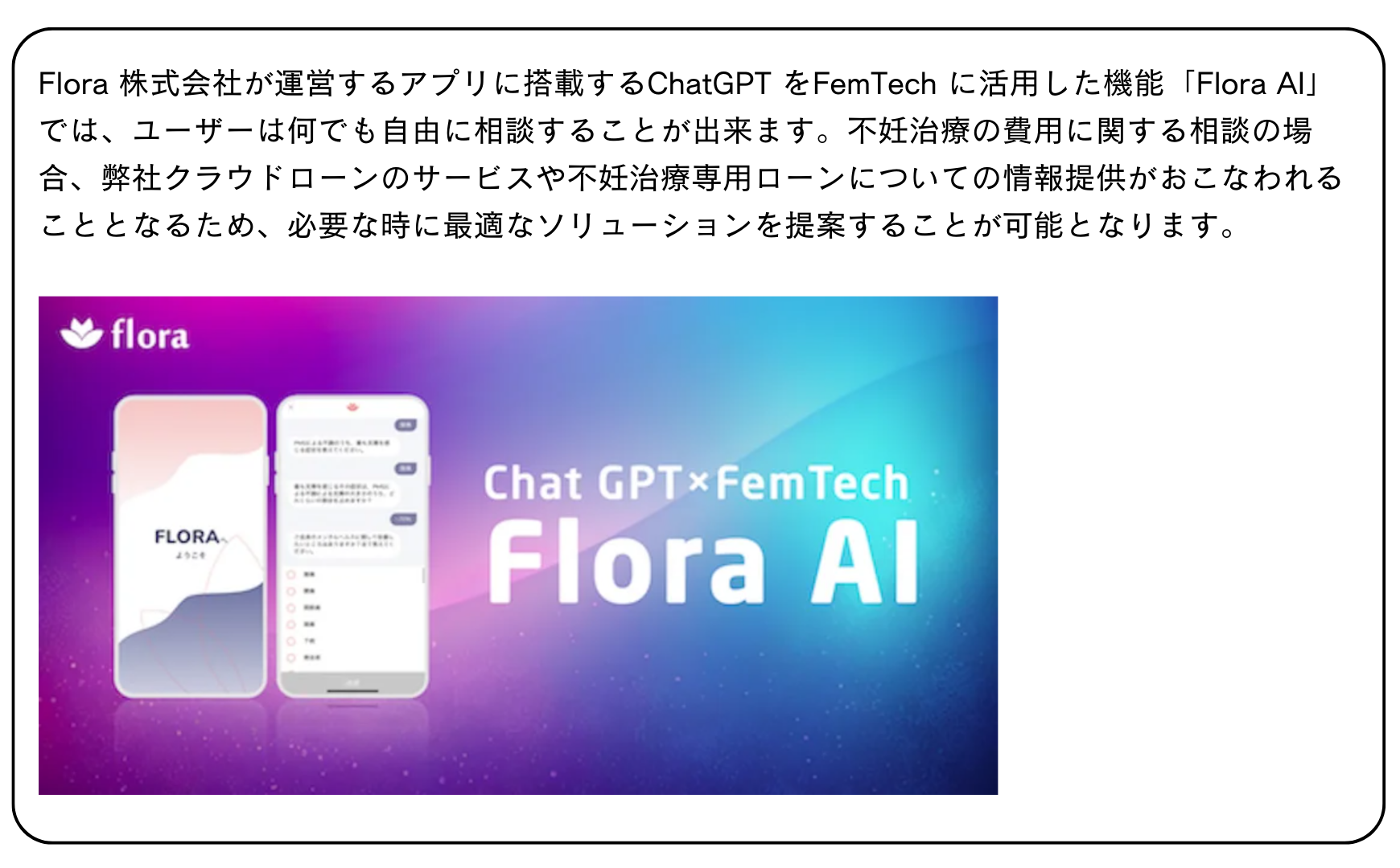 ChatGPTを活用したFlora AIにて不妊治療費用に低金利の銀行ローンの提案を開始