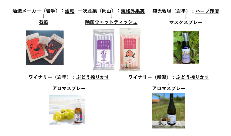 地域ごとに特徴ある素材を活用し、固有のストーリーを持つ地域発ブランド(日本酒・焼酎・ワイン・ジン等を製造する酒造メーカー、地域特産の農作物を活用した食品・飲料メーカー等)と連携を強化し、製造時に出る副産物をアップサイクルし、ストーリーあるブランド開発の支援を加速します。