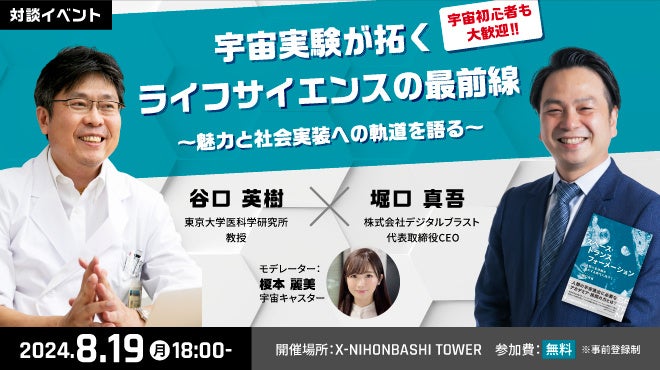 小型ライフサイエンス実験装置の開発や宇宙産業の活性化・新事業創出をサポートする株式会社DigitalBlast(本社:東京都千代田区、代表取締役CEO:堀口 真吾、以下DigitalBlast)は、2030年の国際宇宙ステーション(ISS)退役後の宇宙ビジネス・宇宙開発を見据えた書籍『スペース・トランスフォーメーション 人類の生存圏が拡大する時代に向けて』(総合法令出版)の出版を記念し、2024年8月19日(月)に、宇宙ビジネス共創拠点X-NIHONBASHIにおいて「宇宙実験が拓くライフサイエンスの最前線 ─魅力と社会実装への軌道を語る─」を開催することをお知らせいたします。
