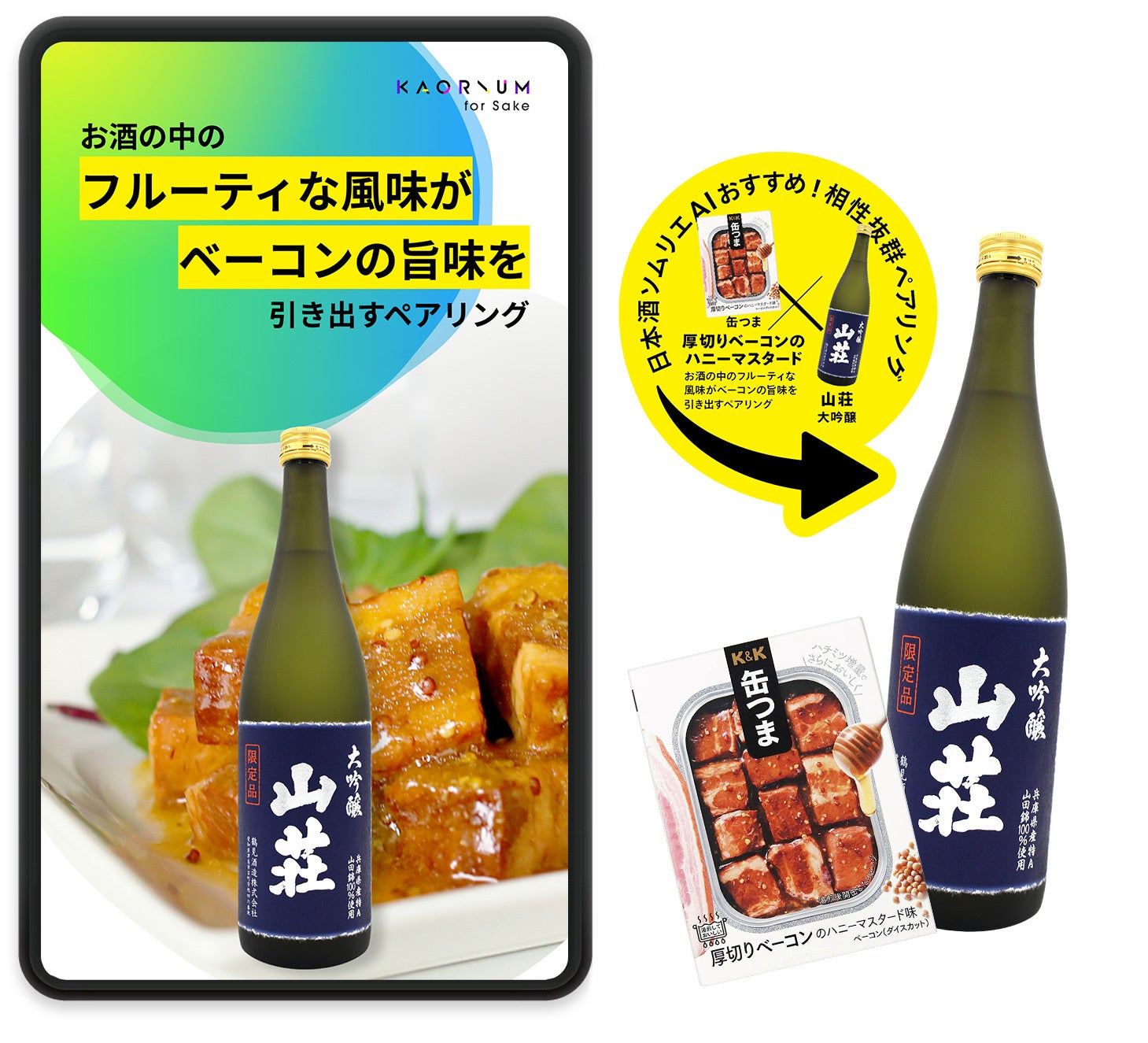 日本酒ソムリエ AI「KAORIUM for Sake」は、インターネット上の膨大な言語表現と人の香りの感じ方を取り入れた AI に、1 万以上の日本酒の風味・感性データと 酒ソムリエの感性を融合させた最先端の AI システムです。表現の難しい日本酒の風味を、わかりやすい言葉で表したり、ある言葉に紐づく日本酒を導き出することを可能にします。