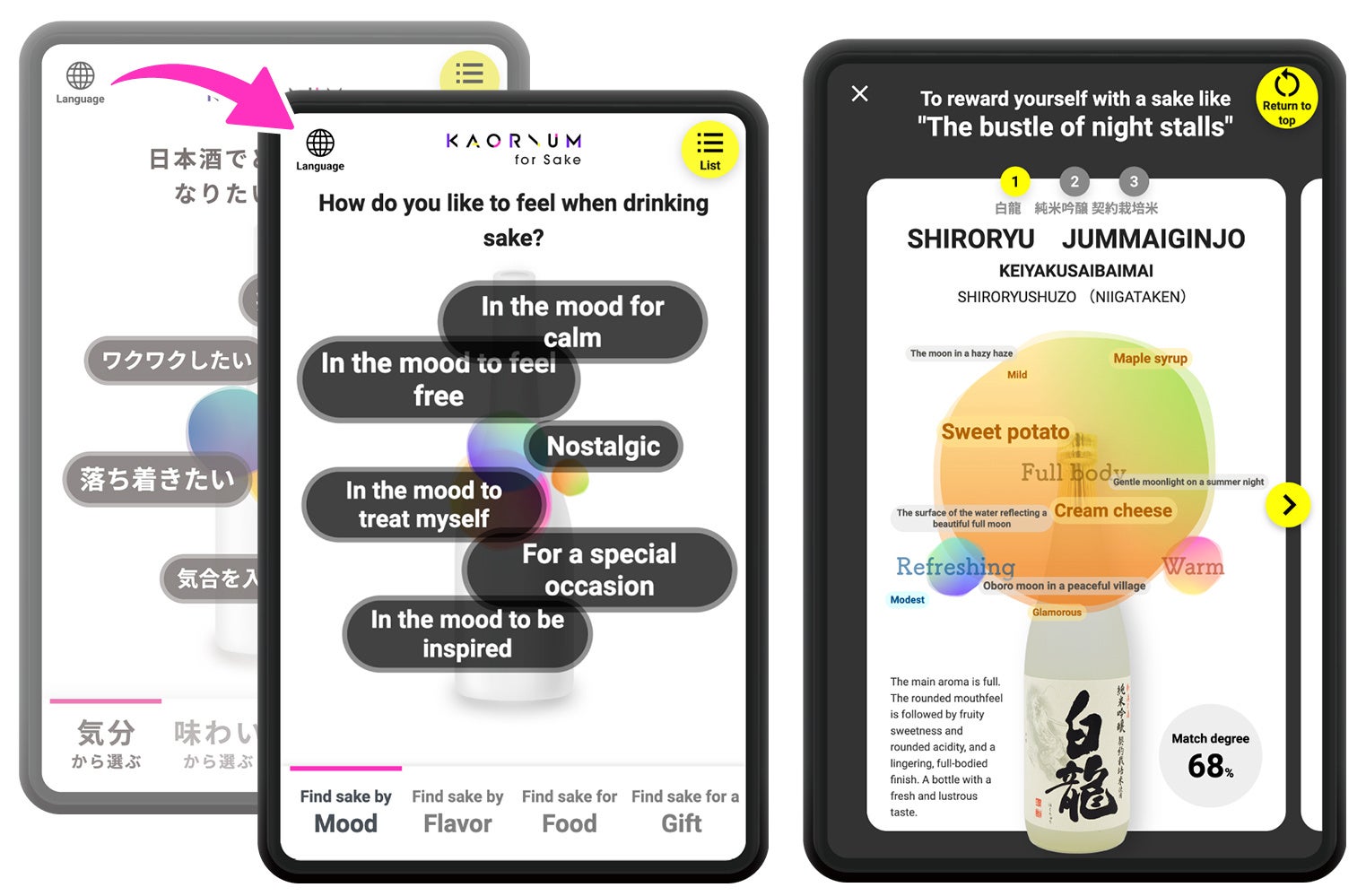 最先端の日本酒ソムリエ AI が、ぴったりのお酒選びをサポート