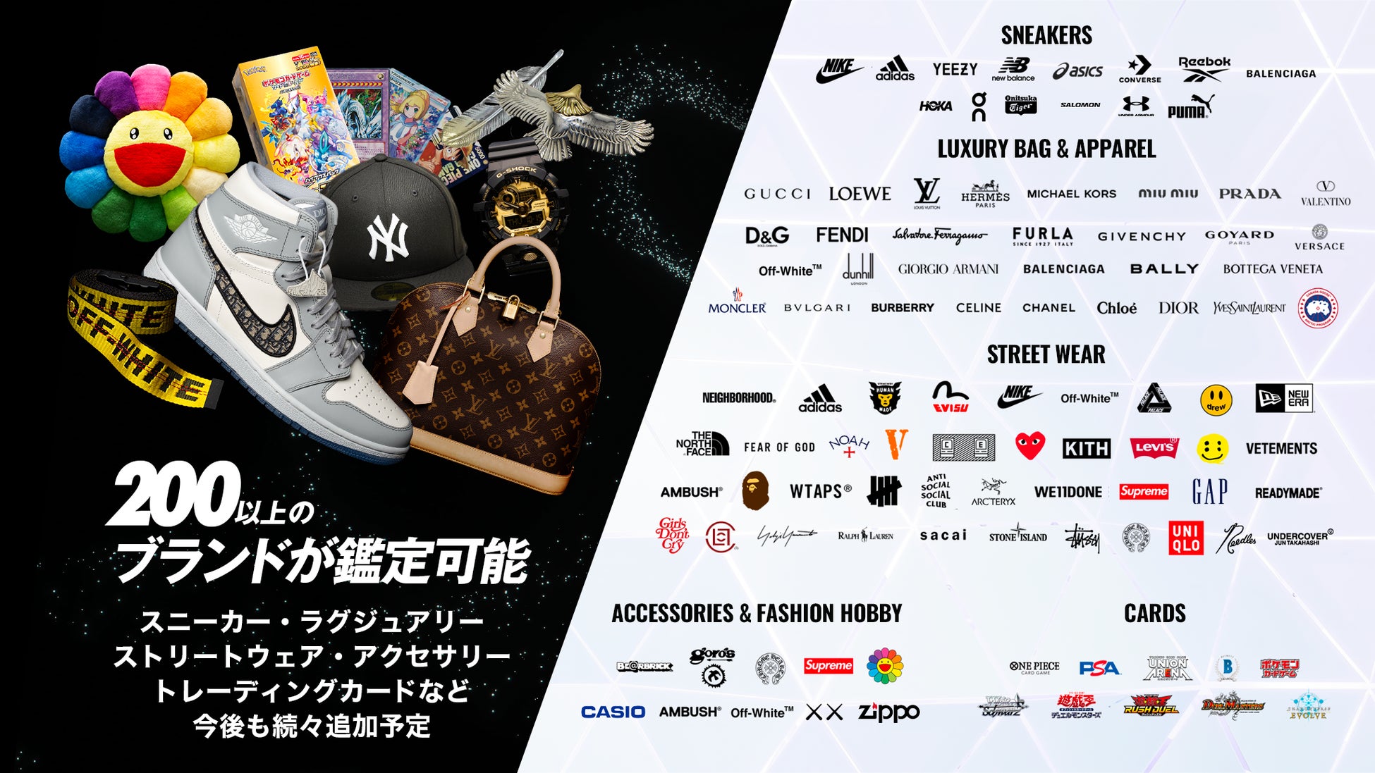 現在、スニーカーブランドをはじめ、アパレル、アクセサリー、ラグジュアリーブランド、トレーディングカードなど200以上のブランドを鑑定することができます。今後も対応ブランドを追加してまいります。
